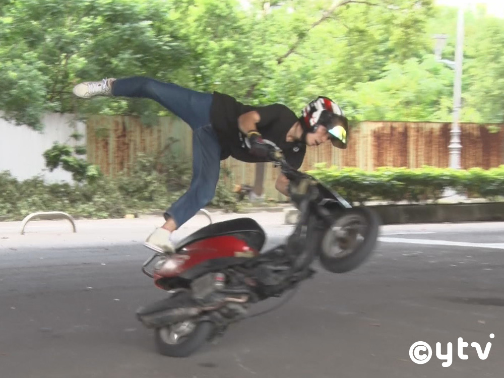 優さんのパフォーマンスは、スクーターをウィリー走行させながらアクセルとブレーキを駆使し、巧みなボディバランスでさまざまな技を披露する「フリースタイル」というジャンル。次々と新しい技を考えては、多い日で1日8時間、食事もとらずに練習を重ねる日々だ。