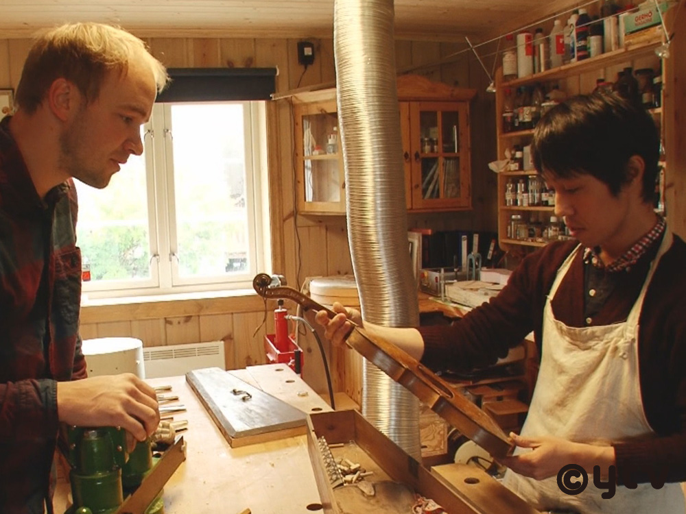 高校時代に楽器職人になることを志し、イギリスの楽器職人育成の名門校「ニューアークバイオリン製作学校」で4年間学んだ。その後、日本でヴァイオリン職人として働いていた時に、ハーディングフェーレの存在を初めて知り、ひと目で虜になった。「旅行で本場ノルウェーを訪れ、短い期間だったけど、コンサートに行ったり、ノルウェーの自然や生活を見ることができた。日本に帰って、あらためてハーディングフェーレの音を聞いたとき、パッとノルウェーの風景が浮かんできた。壮大な自然にとても合った楽器だからこそ、ノルウェーで生まれたんだということがすごくよく解って…。そこで初めて“僕はこの楽器を作りたいんだ”と確信しました」。今は、自然豊かなノルウェーの地で楽器作りを学ぶことに、大きな幸せを感じているという。