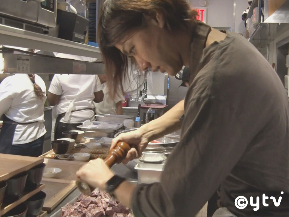 雄さんが働くのは、飲食ビジネスの激戦地・マンハッタンに3か月前オープンした日本食レストラン「ミフネ」。店側からのたっての希望で料理長として迎えられ、店の立ち上げからメニュー開発まで携わってきた。厨房のスタッフは10名。日本人は雄さんを含め2人だけで、あとはアフリカやメキシコなど世界各国からやってきた外国人ばかりだ。