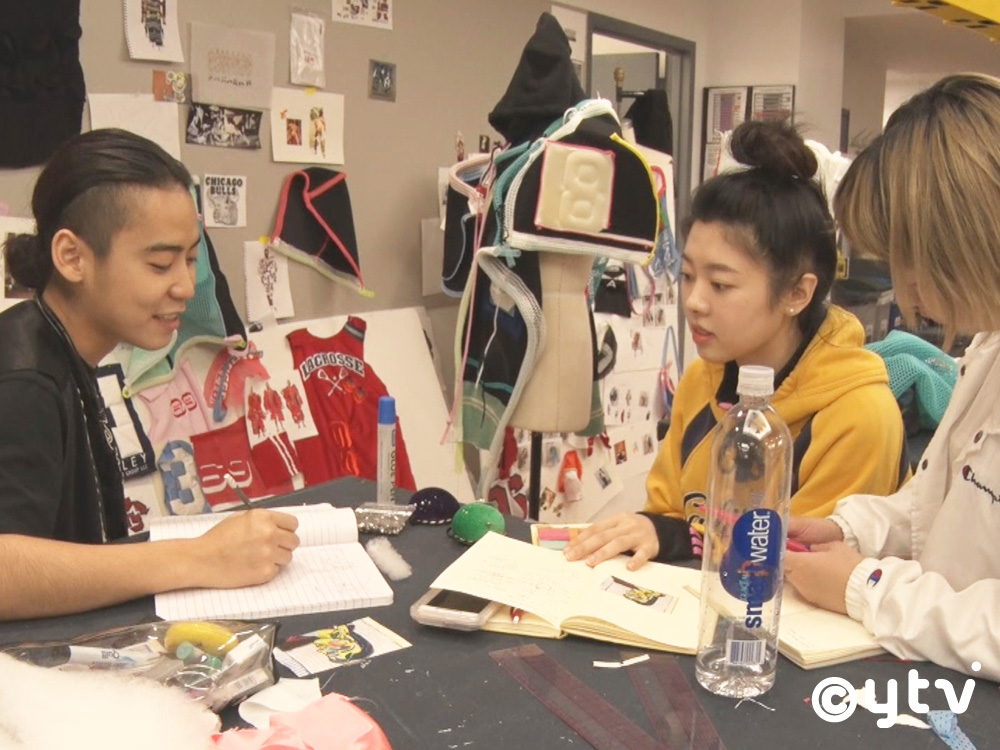 パーソンズ美術大学は、ファッションデザイナーのアナスイやマークジェイコブスなどの有名デザイナーを数多く輩出している世界最高峰の美術大学。翔さんが所属している2年制のファッションデザイン社会学科では、世界10カ国から集まったデザイナーの卵たち18名が学んでいる。ここではデザインに対するコンセプト作りからビジネスモデルまでを幅広く学び、卒業後すぐに活躍できるよう、さまざまなカリキュラムが組まれている。これまでは、まずデザイン画を描いて制作するのが当たり前だったという翔さん。ここでは、あえてデザイン画を描かず、サンプルをいくつも作りながら形にしていくやり方を学んでいる。今は、刑務所に通って受刑者の話を聞き、そこからインスピレーションを得て、メンズコレクションを制作しているところだという。