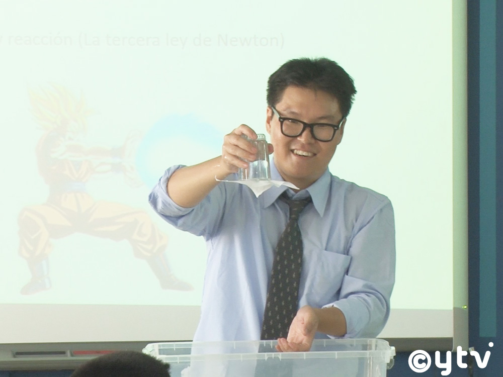 太一さんの職場はペルーの日系人社会が創設した学校「コレヒオ・ラ・ウニオン」で、生徒数は小・中学部合わせて1200人。太一さんは中学生の物理を担当しているが、実は赴任してまだ3日目で、教室の場所すらおぼつかないほど。しかも、懸命に授業を進めようとするも、生徒たちは物理には関心がないのか話も聞いていない様子。そこで太一さんは一計を案じ、透明の大きな容器に水を入れて教室に持ち込み、水をいっぱいに入れたコップに紙でフタをし、さかさまにしても水がこぼれないという実演を披露する。すると生徒たちの態度は一変、目を輝かせて授業に参加するように。太一さんは試行錯誤しながら、青年海外協力隊に参加していた時に行っていたサイエンスショーで生徒たちの心を掴むことに成功する。