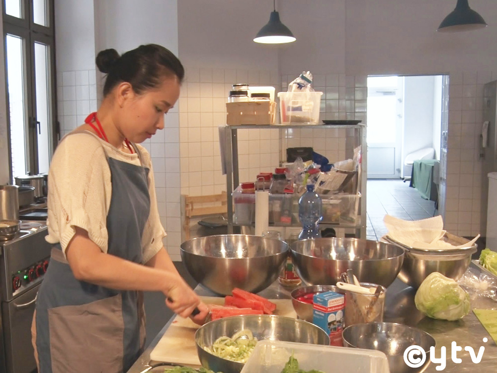 ベルリン郊外にある和佳さんの店「ナッツカート」は、肉や魚を一切使用しないベジタリアンスタイルのお弁当屋さん。豆類やナッツ、野菜をふんだんに使ったおかずや豆腐が入った自家製カレーなど和佳さんが考案したヘルシーな和食メニューが人気で、ほぼ全ての調理を和佳さんが1人で担当する。オープンから3年、ベジタリアン以外の客も多く、今や毎日通う常連客もいるほど。そんなお客さんにいろいろな味を楽しんでもらいたいと日々工夫し、生み出してきたメニューは実に300種類にも上る。しかし順風満帆だったわけではなく、開業当初は客が来ない悲惨な状況だったという。弁当を日替わりにして反応や売れ行きを観察し、改良を重ねていった証が300ものバリエーションでもあるのだ。最近では店舗だけでなく、出張でワンプレートランチの販売をスタート。ドイツ人の好みに合わせながら、アレルギーや宗教の関係で食事制限をしている人も多いため、誰もが安心感を持って食べられるメニュー作りを常に心掛けている。
