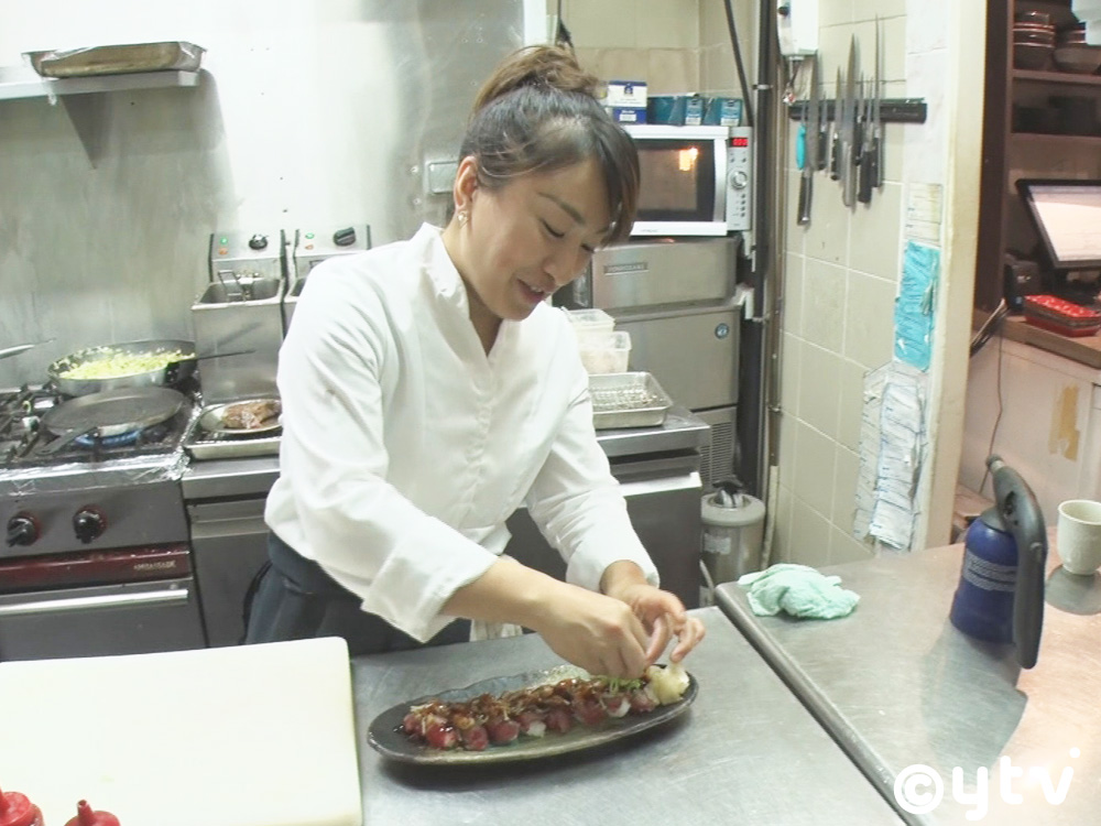 19歳でフランスに渡った祐加さんは、2つ星レストランなどで修業を重ねた後、2006年にカンヌの5つ星ホテルで和食部門のシェフに就任。そこで、フレンチと和食を融合させた人気メニューを次々と考案する。そして7年前、それまでの経験を活かして自分の実力で勝負したいと、世界中からセレブが集まるニースに、和食ビストロ「Ma yucca」(まゆっか)をオープンした。フランス人の意見を否定して『これが“和食”だ』と押し通すよりも、1つのきっかけになってほしい、との思いを持つ祐加さんは、郷土料理の野菜煮込み・ラタトゥイユを味噌を使ってアレンジするなど、フランス人の味覚に合わせた和食を提供。その感覚が評判を呼び、店には地元の人々が絶えず訪れ、バカンスにやってきた観光客にはリピーターもいるほど。そんな店で一番の人気メニューが「まゆっか特製肉寿司」。軽くあぶったサーロインにフォアグラを乗せ、照り焼きソースをかけた一品で、甘辛い味付けがフランス人には新鮮なのだとか。ランチタイムはもちろん、35席ある店内がほぼ満席となった夜の営業でも、オーダーのほとんどが肉寿司。味に自信を持つ一方で、「いろいろなメニューを用意しているのに、他の料理を注文してくれない」とジレンマも感じている。