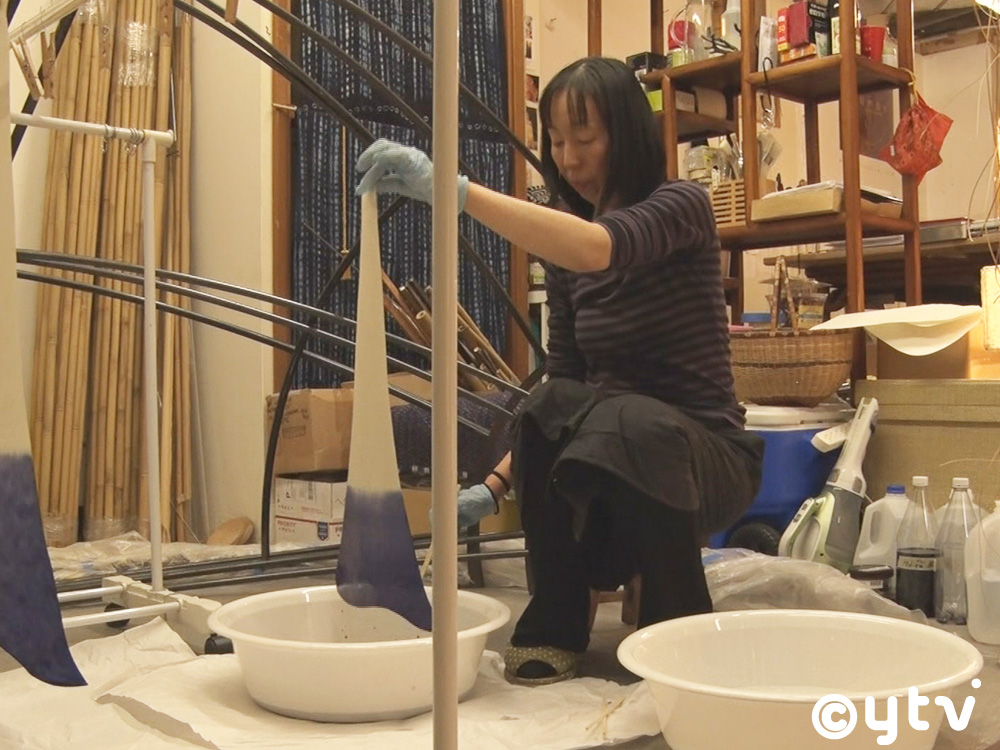 高校卒業後、専門学校でインテリアデザインを学んでいた有理さんは、学校の課題で初めて照明を制作。電気をつけた時と消した時で表情が違うことが面白く、すっかり魅了されたという。やがて照明デザイナーとして活動していこうと決意するが、日本で個展を開いても買い手は全くなく、自分のやっていることは受け入れてもらいにくいと感じていた。そんなとき、ロサンゼルスで個展を開くと作品が売れ、続いて開催したシアトルでも大好評。「アートを買う習慣が定着しているアメリカなら誰かの役に立てる」と、渡米したのだった。今では有理さんの照明は店舗から個人宅までさまざまな場所を彩り、型にはまらないユニークさが建築のプロからも注目を集め、大きなビルなどでも採用され始めた。さらに、郊外の日本庭園で催される親日家に人気の月見イベントで、有理さんの作品が特別に展示されることに。和紙を染める手法で制作したのは、6輪の朝顔。夕暮れのシアトルに咲いた光の花は多くの人々の心を捉えた。