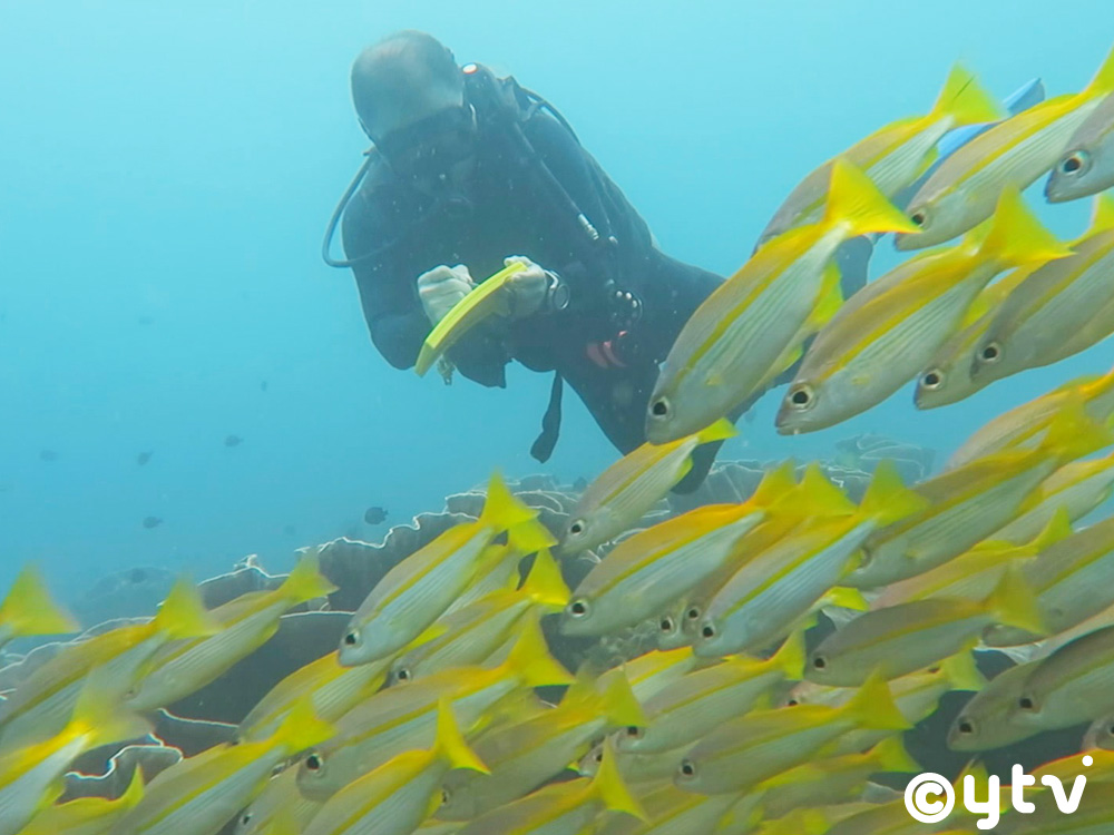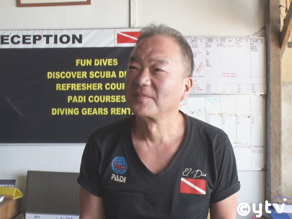 島の中心地・エルニドにある義之さんのダイビングショップ「El-Dive(エルダイブ)」は、町で唯一日本語が話せるインストラクターがいる店。日本人2人、フィリピン人9人のスタッフを抱えている。ツアー客には世界一のリゾートの魅力を存分に味わってもらうため、パラワンの海を知り尽くす義之さんがダイビングスポットへ案内。周辺の小さな島々を巡りながら、800種類を超える魚が生息する海や、サンゴの群生地など自然が織りなす地形を楽しめるポイントをガイドする。さらにダイビング以外の部分でも楽しんでもらえるように、ランチは船上でスタッフが調理してもてなす。作業中もスタッフと密にコミュニケーションを取る義之さん。フィリピン人スタッフはサービス精神旺盛で明るく朗らかな反面、時間や約束にルーズな面もあり、そんな彼らを育てることもオーナーとしての大切な仕事のひとつだという。夕方、ツアーが終わるとすぐにデスクワークに取り掛かり、休む間もなく1日を終える。