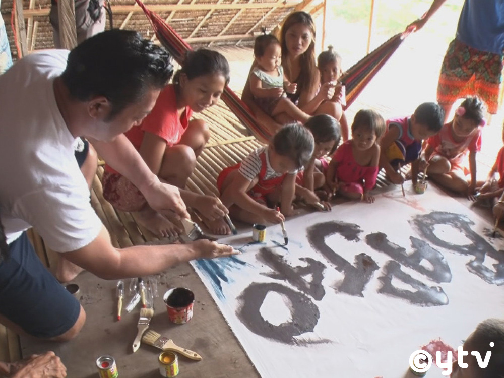 ゲストハウスに戻ると、大夢さんからぐっさんへお願いが。ゲストハウスの顔となる旗を、村の子どもたちと一緒に作ってほしいという。快く引き受けるぐっさん。さらに看板も手作りし、“バジャウ”の文字とともに太陽の絵をデザインし、「すべてのバジャウの人に太陽が照り続けますように。情熱あふれるゲストハウスであってほしい」との願いを込める。