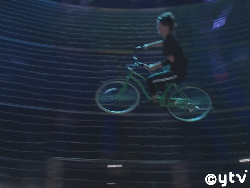 鈴華さんが所属する「ハッピードリームサーカス」は世界各国からパフォーマーを集め、西日本を中心に巡業するサーカス団。普段は2~3か月ごとに各地を回っているが、新型コロナウイルスの影響で今年4月からは飯塚市にとどまり公演を続けている。鈴華さんが出演するのは、サーカスの目玉演目のひとつ「カースタントショー」。逆円すい状のケージの中を自転車で駆け巡るという、スピードがゆるんだりバランスを崩すと落下してしまう危険なパフォーマンスだ。