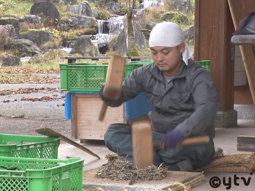大学卒業後は地元群馬の警備会社に勤めていた融さん。安定した給料はもらえるものの、自分の生き方にモヤモヤした気持ちを抱えていた頃、ふと大学時代によくわらび餅を食べていたこと、そしてそれを見ていた教授からわらび粉について教えてもらったことを思い出す。そこからいてもたってもいられなくなった融さんは会社を辞め、わらび粉の産地を巡って最も理想に近いこの地にたどり着いたのだった。これほどまでに情熱を傾けているわらび粉作りだが、実は年間の売上はたった25万円程度。だが「自分で『本当にこれがやりたい』ってなったのは、わらび粉が初めて」だといい、生活費は山之村の特産品である「寒干し大根」を作る作業など、地域の手伝いをしてまかなう。もはや村の人にとっても融さんは欠かせない存在だ。