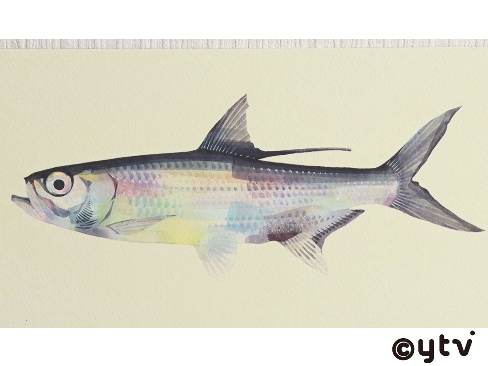 魚の水彩画が専門で、どこか愛嬌のある表情の魚を華やかな色使いで描く祐成さんは、画家として活動を始めてから10年になる。作品集も出版し、毎年個展も開催。京都水族館では館内に絵が展示され、水槽で泳ぐ実物の魚たちの隣で彼が描いた水彩画が彩を添えている。「魚が好きで、魚を描きたいと思って絵を始めた」という祐成さん。特に魚にのめり込むきっかけとなったのがピラニアで、子どもの頃に本で読んだ牛をも食い殺す恐ろしい姿に恐怖心と好奇心が掻き立てられた。さらに百貨店のペットコーナーで実物を見ると、意外にも小さな体にますます興味が募り、親にねだって家でもピラニアを飼うように。この出会いがもたらした感動が、20年以上の時を経た今でも魚を描く原動力になっているという。