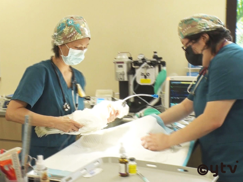 パーク内で生息する鳥たちは、常に元気な状態でいるわけではない。そこで恵子さんら動物看護師が、病気やケガで傷ついたパーク内の鳥たちのケアや獣医のサポートを行っている。仕事場であるバックヤードには鳥専用のCTスキャンなど最先端の医療設備が整っており、一角には治療中の鳥たちが羽を休める入院施設も。急患として鳥が運ばれてくることも珍しくなく、先日も鳥の腹の調子が悪いとのことで、麻酔で眠らせてから急遽胃カメラを使って検査をすることになった。それでも原因が分からなかったため、緊急で腹を開ける手術をするなど、人間と同じような処置を鳥たちにも行なっている。鳥は自然本能が強く、症状があっても隠す生き物。そのため、「食欲がない」などちょっとした変化を見抜く観察力が動物看護師には必要なのだという。