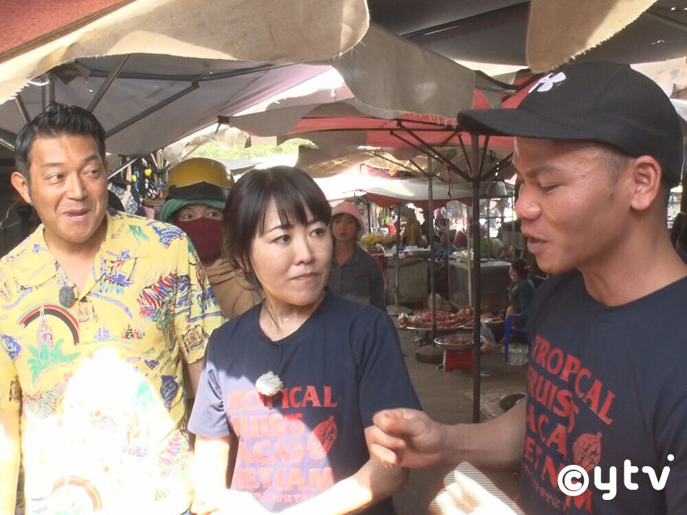 ベトナム産カカオの持つ独特の味わい。亜矢子さんは、まだまだ秘められた可能性を引き出すべく、常に新たな味を模索している。そんなチョコ作りを一身に背負っているのが、ショコラティエのチュオンさん。精力的に開発を続ける彼のお手伝いになればと、今回ぐっさんも地元の市場で食材を探し、新たなフレーバーを提案することに。不安そうな表情のチュオンさんをよそに、ぐっさんが選んだセリやゴーヤ、一押しのニンニクを使ってチョコを試作してみるが、果たしてその味は…?