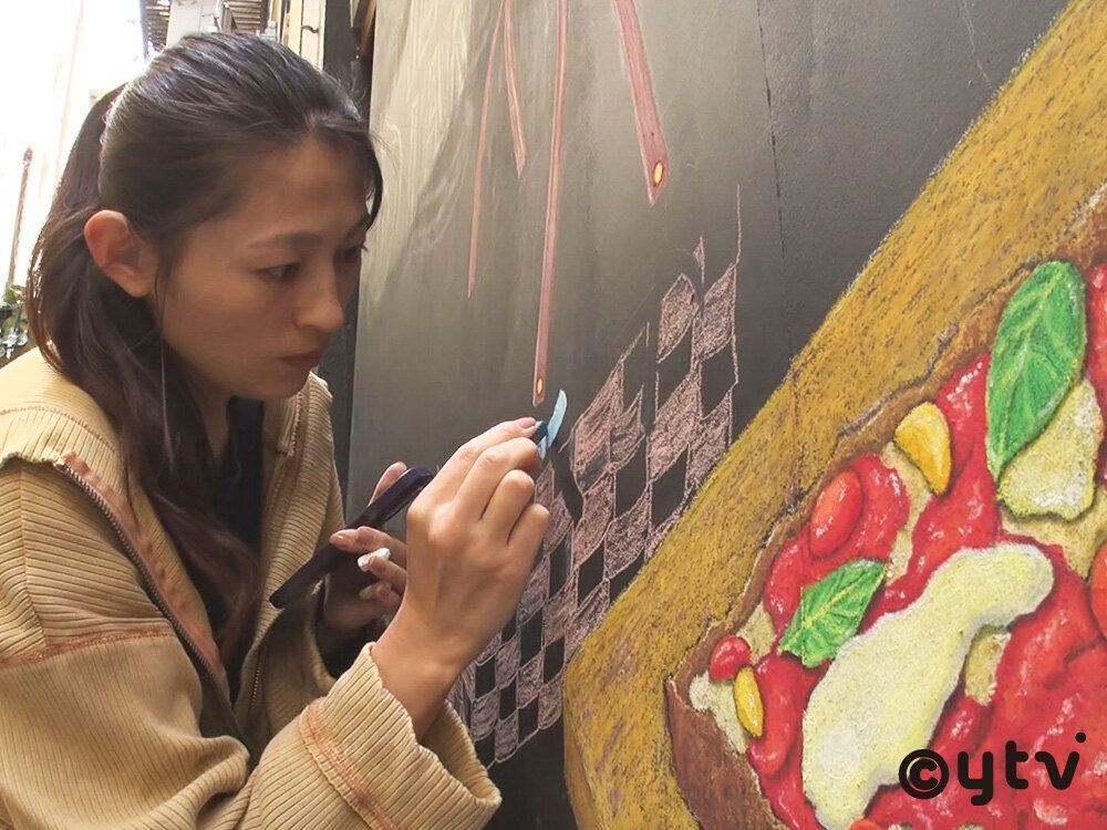 絵を描くことが大好きだった琴之さんは、小学生の頃から数々の賞をもらうほどの腕前で、父と一緒に取り組んだひまわりの絵では宇都宮の芸術祭で特賞を受賞した。ただ、チョークアーティストになるまでの道のりは決して平坦ではなかったという。アーティストやデザイナーに憧れていたものの、両親が望むまま安定した会社に就職。しかしストレスと過労で体調を崩してしまう。そこで仕事を辞め、自分が本当にやりたいことを模索する中、人生を大きく変えたものが、図書館で偶然見つけた本に載っていたチョークアート。ロスのとある店の壁一面に描かれたタイポグラフィのチョークアートに感動した琴之さんは、どうしてもこの作品が忘れられず、オーストラリアで学んだあとロスへやってきたのだった。今また人生を変えたそんな作品を前にして、「チョーク1本で人々をこれだけ感動させられるようなアーティストになりたいと思います」と誓う琴之さん。現在、仕事の依頼は月に8件ほどで、収入的にはまだまだというのが現状。そこで地道に飛び込みの営業も行っている。