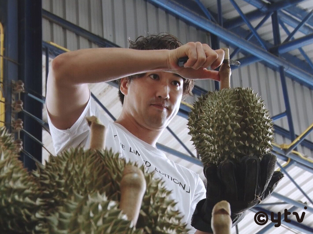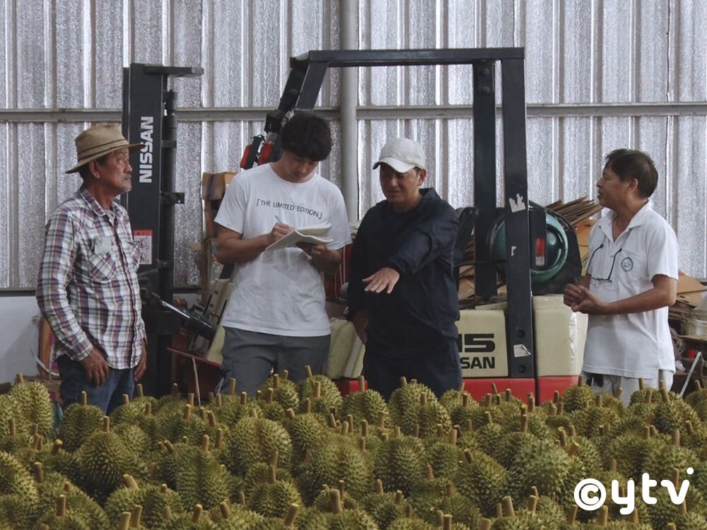 達弥さんがこの日やってきたのは、タイ南東部の街・チャンタブリー。トロピカルフルーツの名産地であり、タイにおけるドリアンの全収穫量の半分以上を占めることから「ドリアンの都」と呼ばれている。ドリアンは高級フルーツながら、輸送中に熟して強烈な匂いを放つため、日本ではくさいというイメージも。だが現地で食べると「最初に甘くてトロピカルな味がきて、チョコレートとかクリーム系の甘さがきます」と達弥さん。「ぼくはタイのドリアンが一番おいしいと思う」と胸を張る。