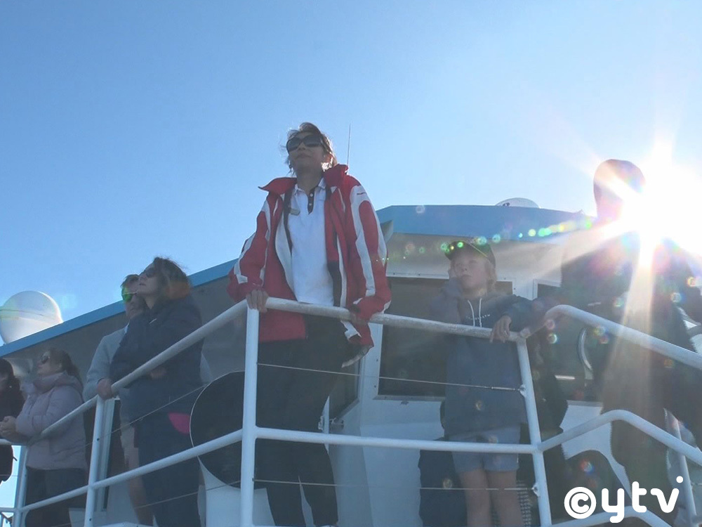 ゆいさんの仕事は、湾の中を中心に巡るイルカのウォッチングツアー。朝10時になると、3階建て300人乗りというクルーズ船にはツアー客が続々とやってくる。ガイドとしての腕の見せ所が、イルカを見つけること。実はイルカはレーダーなどでは居場所を特定することができないため、ガイドの長年の経験が頼りになるのだ。こうして目を凝らして海を見ていたゆいさんの前に現れたのは、バンドウイルカの群れ。そして船上のお客さんたちに海を泳ぐ姿を案内する。この湾に約140頭生息するバンドウイルカは1頭1頭背びれの形が違うそうで、何十年も見ているゆいさんはどの群れのどの個体かが見分けられるという。そんなイルカウォッチングは、「自分が楽しんでできているものなので、自分にとっては仕事ではない。一緒にお客さんとイルカを見て、『よかったね』という感動をシェアしたい」とゆいさんは語る。