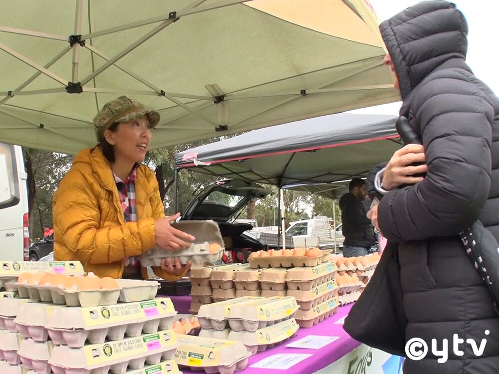 翌朝は、毎週末に出店しているファーマーズマーケットへ。家族で手分けして複数のマーケットに参加し、久美さんも三男のマナン・新くん(12)にひとつを任せると、別のマーケットへ向かう。売り上げの6割以上がファーマーズマーケットでの販売だといい、最近はリピーターも増加。新くんが担当するマーケットでも卵のパックが次々と売れていく。久美さんの元にやってきたお客さんもほとんどが常連。対面販売でお客さんの喜ぶ顔が見られるのが何よりの楽しみだという。