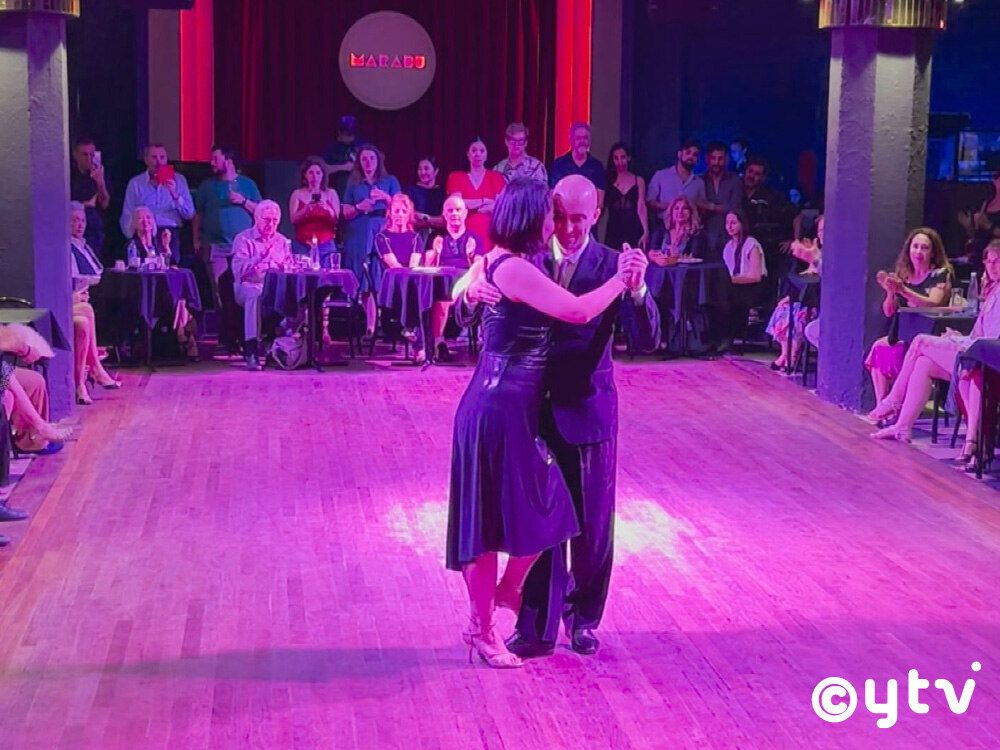 一般的にアルゼンチンで「タンゴを踊る」といえば「サロンタンゴ」のことを指し、即興で踊るのが大きな特徴。決まった振り付けはなく、音楽を聴いた瞬間の感情を男女のペアがどのように表現するかが試されるという。茜さんも「決まったものをやるのではなく、感じたものを自分で出すという方が奥が深い。難しいけど、とても楽しい」と魅力を語る。そんな茜さんが練習のため1人で訪れたのは、「ミロンガ」と呼ばれるタンゴ専門のダンスホール。夜10時、マテオくんをパトリシオさんに預けてミロンガにやってきた茜さんは、多くの人でひしめくフロアの脇で静かに座り、練習相手として踊る男性を探す。ペアを組むには、男性から女性に近づいていくのが暗黙のルール。声をかけるのはタブーで、アイコンタクトで交渉するのだという。茜さんもアルゼンチンに来た当初は毎晩のようにミロンガでタンゴの修業を積んだそうで、この日は深夜2時まで6人と踊った。