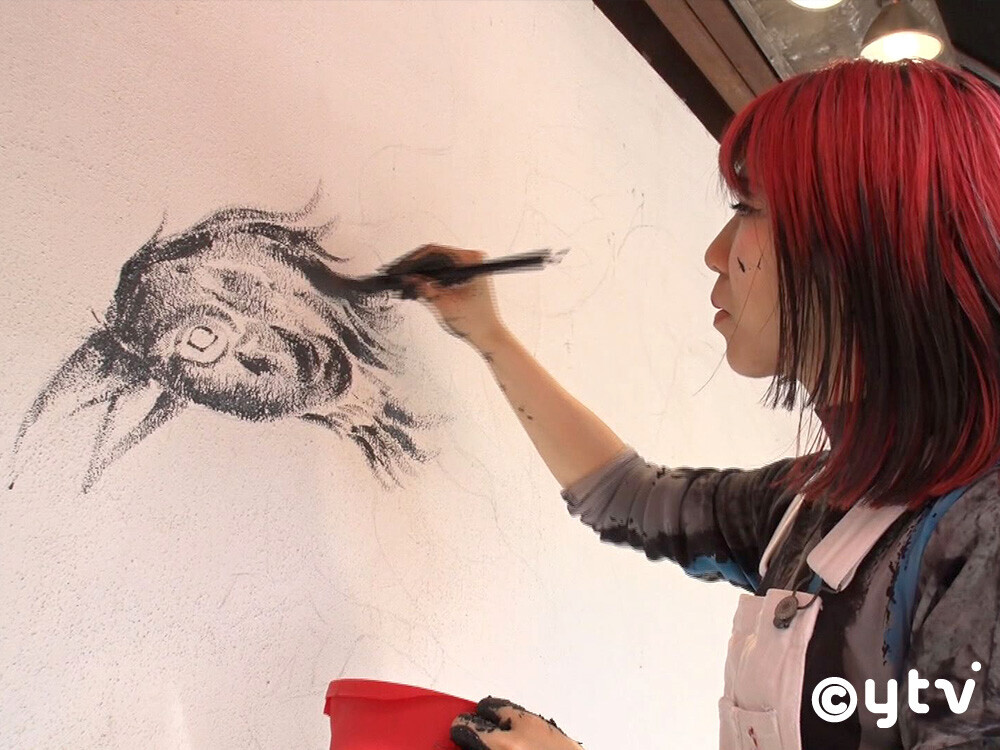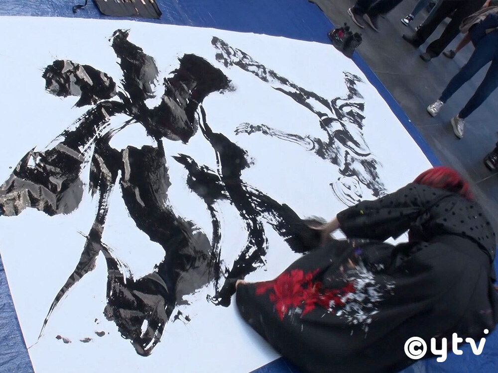 そんな愛理さんに新たなチャンスが。マンハッタンの日本料理店の外壁に書道アートを書かせてもらえることになったのだ。モチーフに選んだのは、日本の神話に登場する“導きの神”八咫烏(やたがらす)と、高校時代に挫折した「かな文字」。当時、ひたすら練習していた「の」の字を自分の新しいスタイルとして取り入れてみるという。壁の高さは約4メートル。下書きもなく、書道の筆とペンキでいくつもの「の」を書いていくが、古い建物の壁はザラザラで思うように筆が進まない。それでも7時間かけて壁画が完成。見事、躍動感あふれる八咫烏と、店のテーマである「和魂洋才」の文字、そして人生で一度だけ書道をやめることを考えたあのかな文字が、迫力ある書道アートに生まれ変わった。
