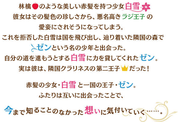 これを拒否した白雪は国を飛び出し、辿り着いた隣国の森で