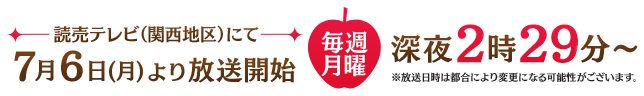 読売テレビ(関西地区)にて7月6日(月)より放送開始 毎週月曜 深夜2時29分~