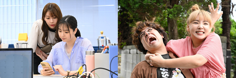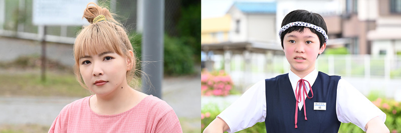 <左:(大人になった)橘文香役 野呂佳代/右:(中学時代)橘文香役 三宅りむ>