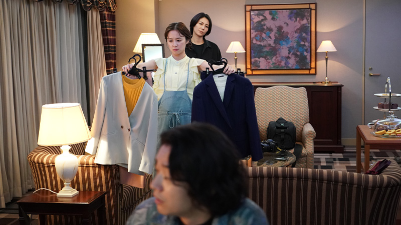 Then, the True Face is Revealed「ランリーテクノロジー」に、市川(玉山鉄二)の慈善活動の取材と称して潜入することになる前。咲(堀田真由)は、鏡の前の立ち、“女性記者っぽい”洋服を手にしていた。潜入用に、円(松下奈緒)にそれっぽい服を選んでもらっていたのだ。咲から「どっちが記者っぽい?」と聞かれ、椎名(染谷将太)が出した答えとは!?