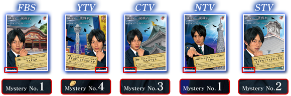 ポスターに書いてある「Mystery No」をF(FBS)・Y(YTV)・C(CTV)・N(NTV)・S(STV)の順に並べます。