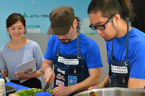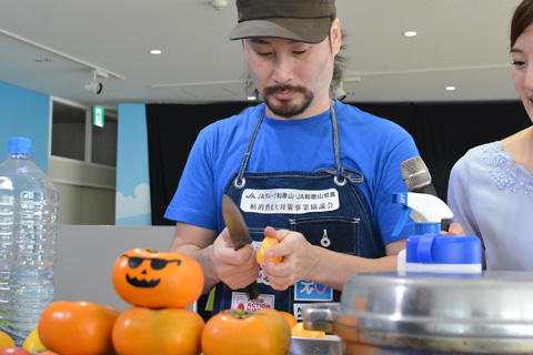 会場に集まった観客たちは出来立ての『KAKIあわせ料理』を実食。柿農家の男性は「こんな料理は食べたことない!」と、食べなれたはずの柿の新しい味に感動した様子。小さな和歌山っ子たちにも『KAKIあわせ料理』は好評で、パクパクとおいしそうに食べる姿が見られた。解説を担当した農林水産省 食文化・市場開拓課長の西経子は、「昨年、アメリカへの柿輸出が解禁になった際に一番手で輸出されたのは和歌山の柿。今後も各国に柿の輸出を進める中で、海外でも親しみやすいレシピと柿とをセットで輸出することが成功の鍵です。赤コーナーの料理はメキシコ料理がベース、青コーナーは本格スパイスからのカレーと、このままのレシピで多くの国で受け入れられそうですね!」と柿料理の世界進出に可能性を感じたようだった。
