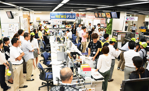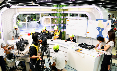 災害時も視聴者、とくに被災者にとって役に立つ放送を続けられるよう様々な設備を整え、災害報道訓練を定期的に行い、いざという時に備えています。