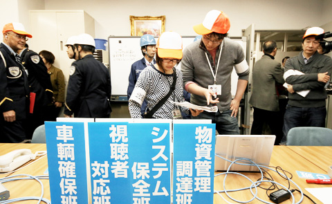 - 大地震や水害が発生した時に放送を支える後方支援部門の訓練を行っています。