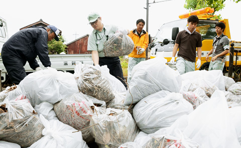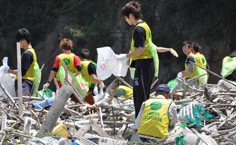 京都府舞鶴市小橋海水浴場での清掃の様子です。