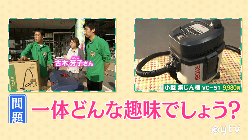 7月8日放送 歓喜あふれる家 阪急電車宝塚線・三国駅近くにある物件「歓喜あふれる家」をリポートする。 お問い合わせ先 「歓喜あふれる家」連絡先:SAKURA不動産TEL:06-6392-0009(池田さん) 藤崎マーケットの田崎とトキが、ホームセンターにやって来たお客さんの買い物袋の中身をチェックし、どんな使われ方をするのか、のぞき見する。正解は「彫刻」でした。