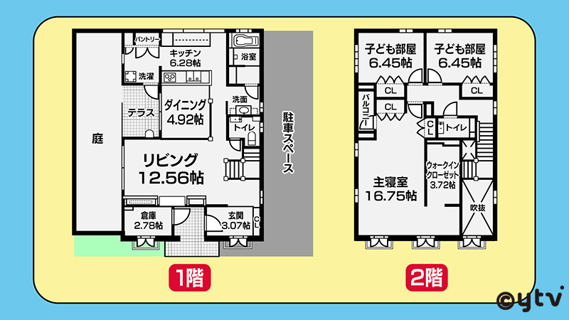4年前にモデルハウスとして建てられた2階建ての一軒家で、敷地は約54坪、間取りは3SLDK。