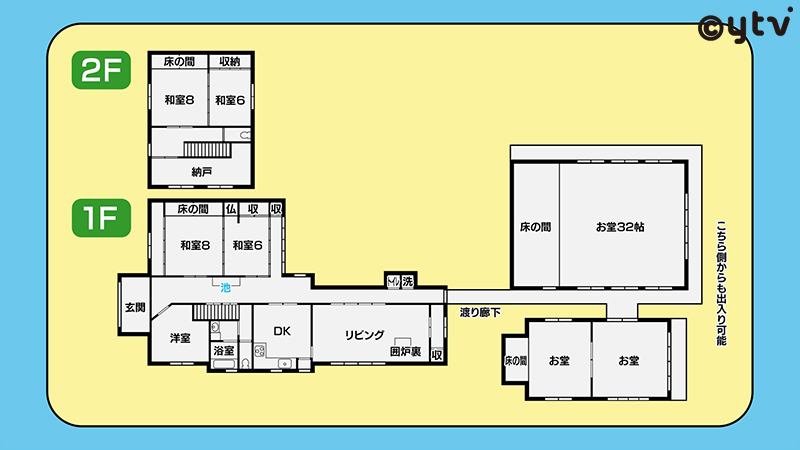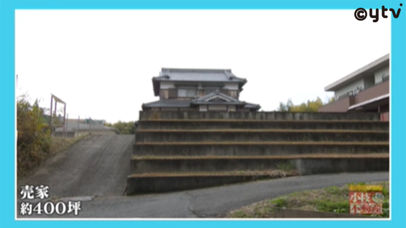 敷地面積400坪に建つ純和風の物件。前オーナーが予算に上限を付けず大工に建築を依頼し、良質で高価な建材がふんだんに使われており、小枝所長も「普通の家やないな」と興味津々!6LDKの母屋のほかに、渡り廊下でつながった大きな謎のスペース「道場」が!「武道を教えたり」「塾を開いたり」「落語会や講演会を開く」などいろいろ使える元お堂がある物件!販売価格は3,950万円です。