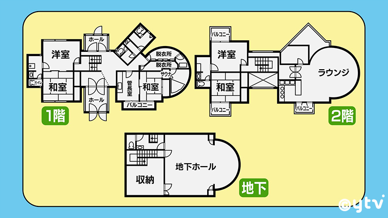 玄関は3階まで吹き抜けで開放感抜群。壁や床はすべて重厚で堅牢な石&コンクリート造り。キッチンは本格的な厨房。2階の広々としたラウンジは、円形に外へ張り出した全面ガラスから望む六甲山の大パノラマが圧巻。さらに、1階には展望大浴場、地下にはライブやパーティーもできる25坪のホール、屋外にはBBQスペースも完備しており、住居とは思えないほど超豪華!住んでも良し、ホテルやレストランを営んでも良しのなんでも出来る家の販売価格は8,800万円です!