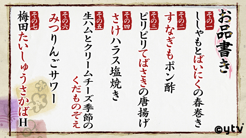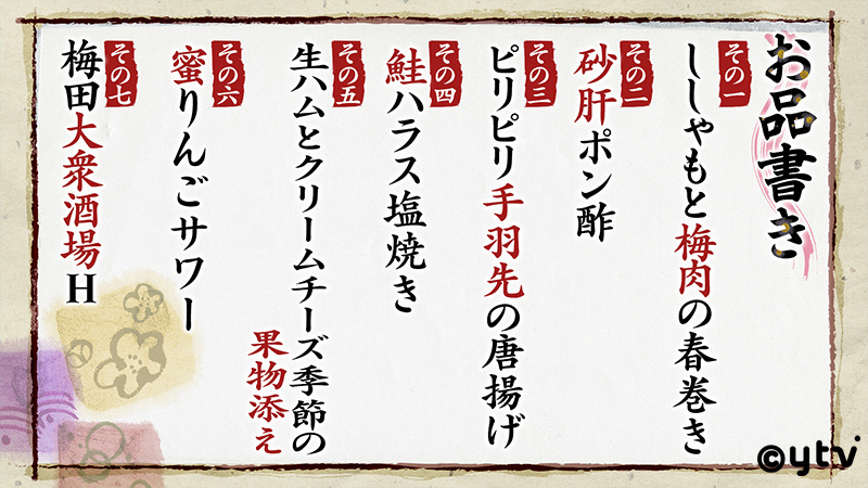 今回は、大阪市北区にある人気居酒屋「大衆酒場H」のメニューから7品をピックアップして出題!