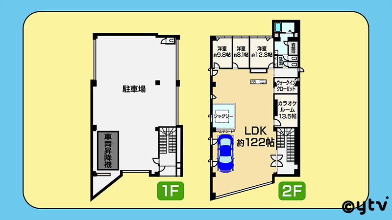 姫路市にある【超~買いたくなる家】をリポート!元保険会社だったビルを住居に改装した一軒家。2階は122帖もあるLDKには本格ビリヤード台や、本格バカラテーブル、シアタースペース、岩盤浴、カラオケルーム、ワインセラー、さらにはLDKのど真ん中に仕切りなしで設置された巨大ジャグジー!そして1階は10台も停められる屋内駐車スペース。車を傷めないよう駐車場にはエアコンを6台も完備。さらにこだわったのが〝スーパーカー用展示設備〟122帖のリビングで愛車を鑑賞するために駐車場から部屋までの昇降機が付いているギョーテン物件!販売価格は9,900万円です。