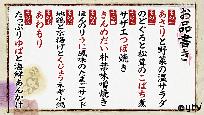 今回は、大阪市北区にある人気居酒屋「創作酒房なかなか」のメニューから8品をピックアップして出題!