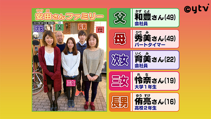 父・和豊さん(49)、母・秀美さん(49)、次女・育美さん(22)、三女・怜奈さん(19)、長男・侑亮くん(16)の5人家族。