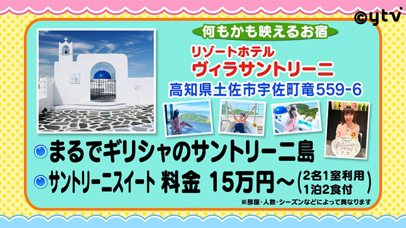 土佐湾の絶景を見下ろす高台に建つ、真っ白な建物群と鮮やかなブルーのドームが美しい<リゾートホテル ヴィラサントリーニ>をご紹介!オーナーが実際にギリシャ・サントリー二島へ何度も足を運んで調査し、現地のホテルを忠実に再現したというゴージャスホテル!どこを撮っても映えまくりで♡さゆりの興奮&絶叫が止まることなくサントリーニ島気分を大満喫!