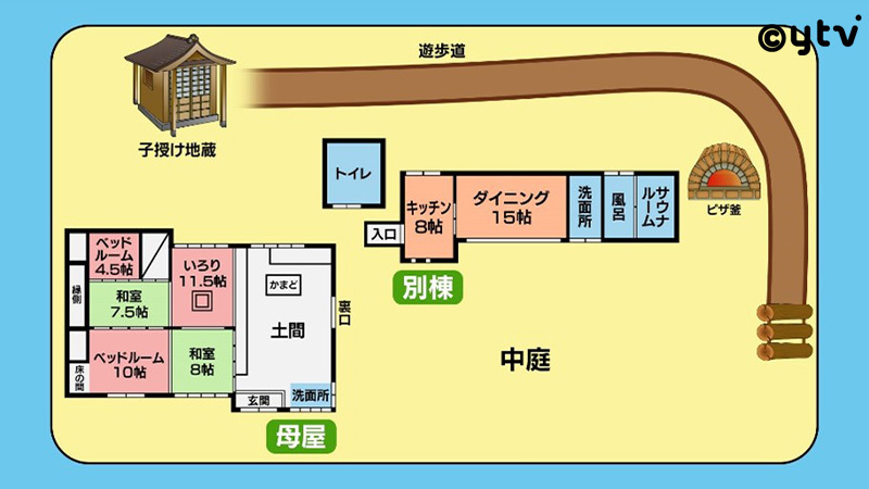 京都府南丹市美山町にある築150年の茅葺きの家【子宝に恵まれそうな家】をリポート!敷地は約1600坪!登録有形文化財にも指定されている物件は、現在一棟貸しの宿泊施設として運営。広い土間の立派な“おくどさん”や、いろりのある客間など、昔の形をそのまま大切に活かす一方で、風呂やトイレなど水回りは最新式にリフォームしている。さらに、別棟として庭に面したモダンなダイニングルームもあり、ガーデンウエディングにもぴったり!そんな物件の裏山には遊歩道が続いており、その奥には近所でも評判の“子授け地蔵”が祀られています。販売価格は5億円です。