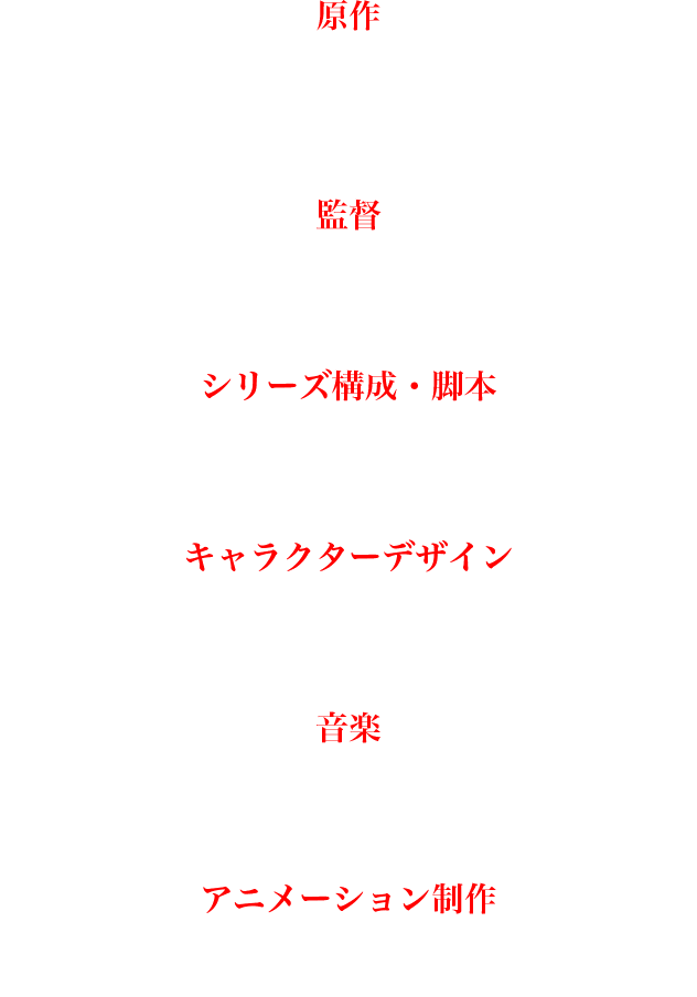 原作:FLIPFLOPs(秋田書店「別冊少年チャンピオン」連載)) 監督:徳本善信 シリーズ構成・脚本:深山 秀(FLIPFLOPs) キャラクターデザイン:中西和也 音楽:末廣健一郎 アニメーション制作:Nexus