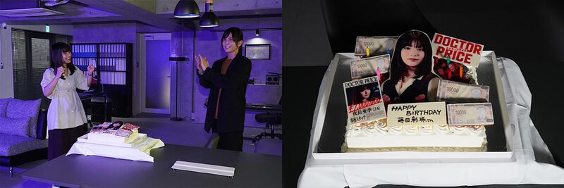 8月7日──主演・岩田剛典が演じる主人公・鳴木金成と、バディの夜長亜季が働くオフィス「Dr.コネクション」にて、蒔田彩珠のバースデーサプライズが敢行された! スタッフから「本日、8月7日は蒔田彩珠さんの誕生日です!」と声がかかると、大きな拍手と歓声が沸き起こる。蒔田の顔写真があしらわれたバースデーケーキを、主演の岩田剛典が「おめでとう!」の声とともに蒔田の元へと運び込み、スタッフからもプレゼントが贈られた。そして、一同がバースデーソングを合唱!蒔田はサプライズに驚きながらも、笑顔で23歳を迎えた心境を述べた。