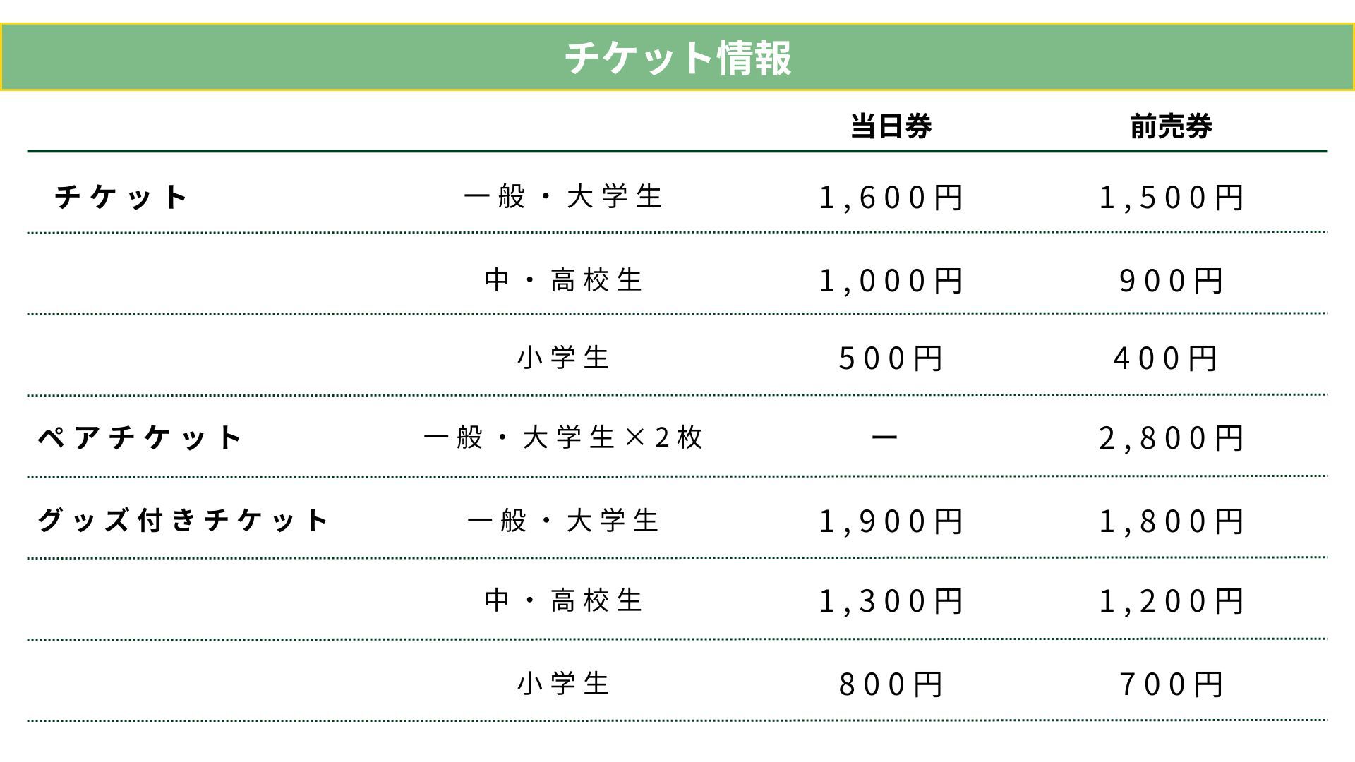 【当日】一般・大学生 1,600円/中高生 1,000円/小学生 500円