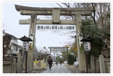 御祭神とする崇徳天皇と源頼政公が縁切りの“陰”をもたらし、大物主神が縁結びの“陽”をもたらすといわれる。お札に願いを記し 念じながら表からくぐると悪縁が切れ、裏からくぐると良縁が訪れるといわれる縁切り縁結び碑がある。 京都市東山区東大路松原上ル下弁天町70 JR京都駅から市バス「東山安井」下車 075-561-5127