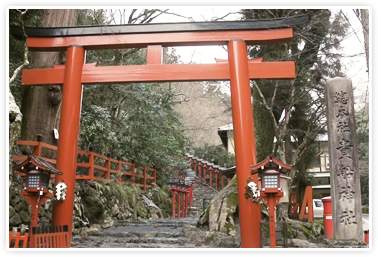 水の神を祀る神社として知られるが、縁結びの神としても信仰されている。御神水に浮かべると文字が浮かび、吉凶を占う水(みず)占(うら)みくじがある。 京都市左京区鞍馬貴船町180 京都バス「貴船」下車 徒歩5分