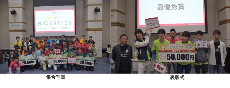 最優秀賞は「Team Televice」チームが作成した『テレバイス』でした。「Team Televice」チームは「テレビと体験しよう」をコンセプトに簡易版テレビ用4DX の実現を目指しました。『テレバイス』はスポーツ中継において選手たちの臨場感をスマートフォンの振動を使って視聴者に届けるサービスや、歌番組において歌手が躍っているダンスを家で一緒に踊ることで類似度を採点するサービスです。優秀賞は、「Handaitic4」チームの『AteVo!』と「新俳句大賞推進委員会」チームの『EMO-TV』でした。『AteVo!』は過去に放送されたテレビ番組にあてレコを行い類似度採点し、他ユーザーと競うことができるサービスです。