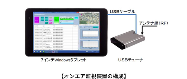 この装置は、独自開発したソフトウェアをインストールしたタブレット端末と、市販されているフルセグチューナーを組み合わせたもので、テレビ局の送信所などに設置し、その送信所から発信している放送電波に異常がないかを監視します。各送信所の放送電波の状態はスマートフォンでも確認が可能で、また、障害が発生した時は各担当者に直接メールで知らせるため、これまでより素早い対応が可能となります。