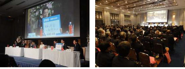 シンポジウムでは、「ウェークアップ!ぷらす」の辛坊治郎氏、森麻季氏の両キャスターが司会を務め、まず、現役の閣僚である加藤勝信厚生労働大臣が「日本の医療の課題と展望」をテーマとした講演を行い、団塊の世代全員が75歳となる2025年に向け、医療、介護、予防などを一体として地域で提供する地域包括ケアシステムを構築する必要性を説明しました。