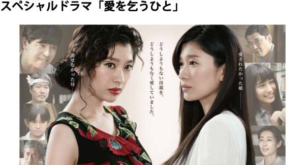 「愛を乞うひと」は、2017年1月に読売テレビが制作・放送した文部科学省選定のスペシャルドラマ。幼少時代に母親から凄惨な虐待を受け、愛に飢えていた一人の女性が、自分の過去を辿る中で本当の自分を取り戻していく、「母娘の絆」をテーマにしたヒューマンストーリーで、篠原涼子さんが虐待する母親・豊子とその娘・照恵の一人二役に挑戦。2017年日本民間放送連盟賞テレビドラマ部門優秀賞や、ユニセフによる「アジア・太平洋こどもの権利賞」、フランス・カンヌで開催された国際的コンテンツ見本市「MIPCOM2017」の奨励賞を受賞するなど、国際的にも高い評価を受けています。