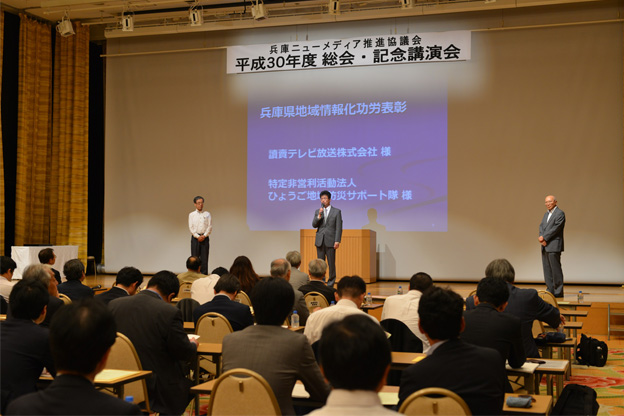災害が起きた際の映像伝送システムの構築による防災対応連携が、地域の情報化の推進に貢献したとして、読売テレビが表彰されました。